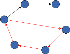 Example of a graph containing a cycle. Marked edges form a directed cycle.