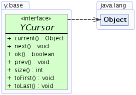 A YCursor acts like a movable pointer on the elements of a collection. The pointer can be moved forward and backward and the element currently pointed on can be accessed. The removal of elements can only be performed on the provider of the cursor, not on the cursor itself. (That's why the cursor presents a read-only view.) Implementations of this interface do not need to support operations marked "optional."