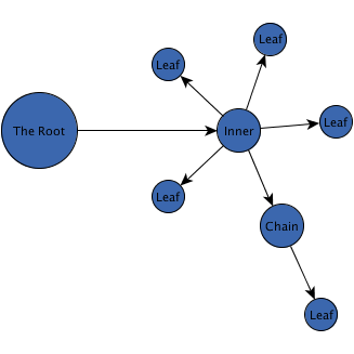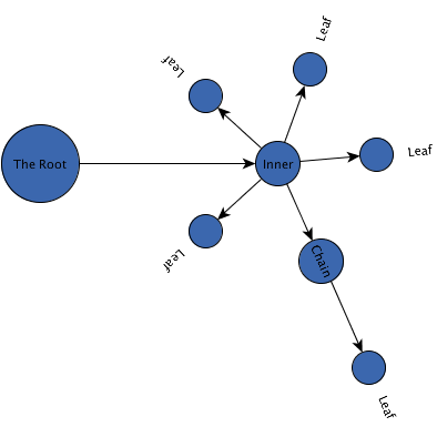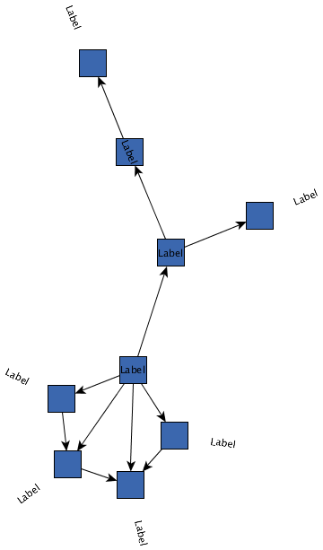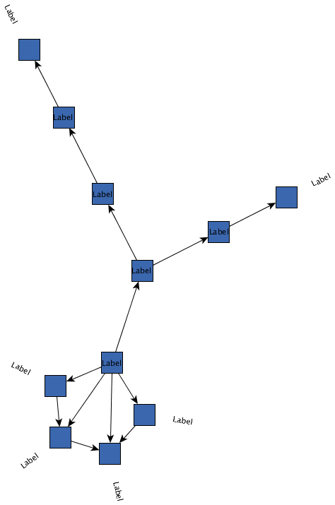 Labels belonging to nodes with zero or exactly one successor (thus forming a sort of chain) will not be oriented horizontal but ray-like; they get the same orientation as their nodes' incoming edge. For the circular layout, nodes that are placed on the perimeter of a circular component and have neighbors connected only to this component will also be placed ray-like. The labels of the other nodes will be oriented horizontally and placed at the center of the corresponding node.