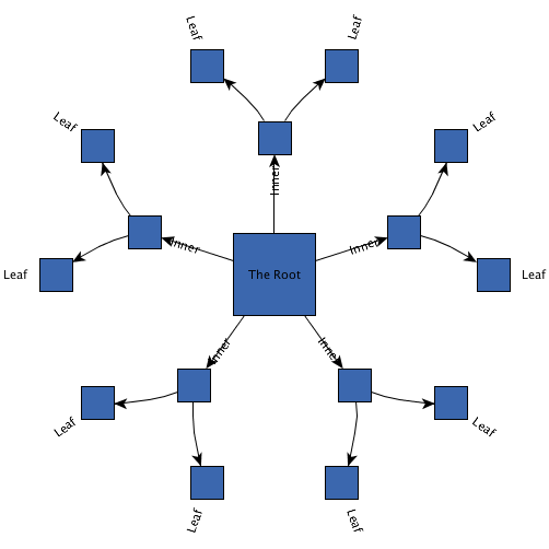 their placement relative to their parent node. The labels of leaves are placed outside the nodes with the same angle