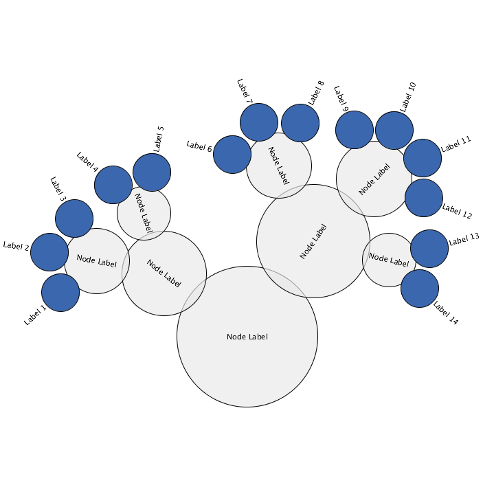 Node labeling policy for ray-like label placement at nodes with zero children or nodes that are placed on the perimeter of a circular component. |