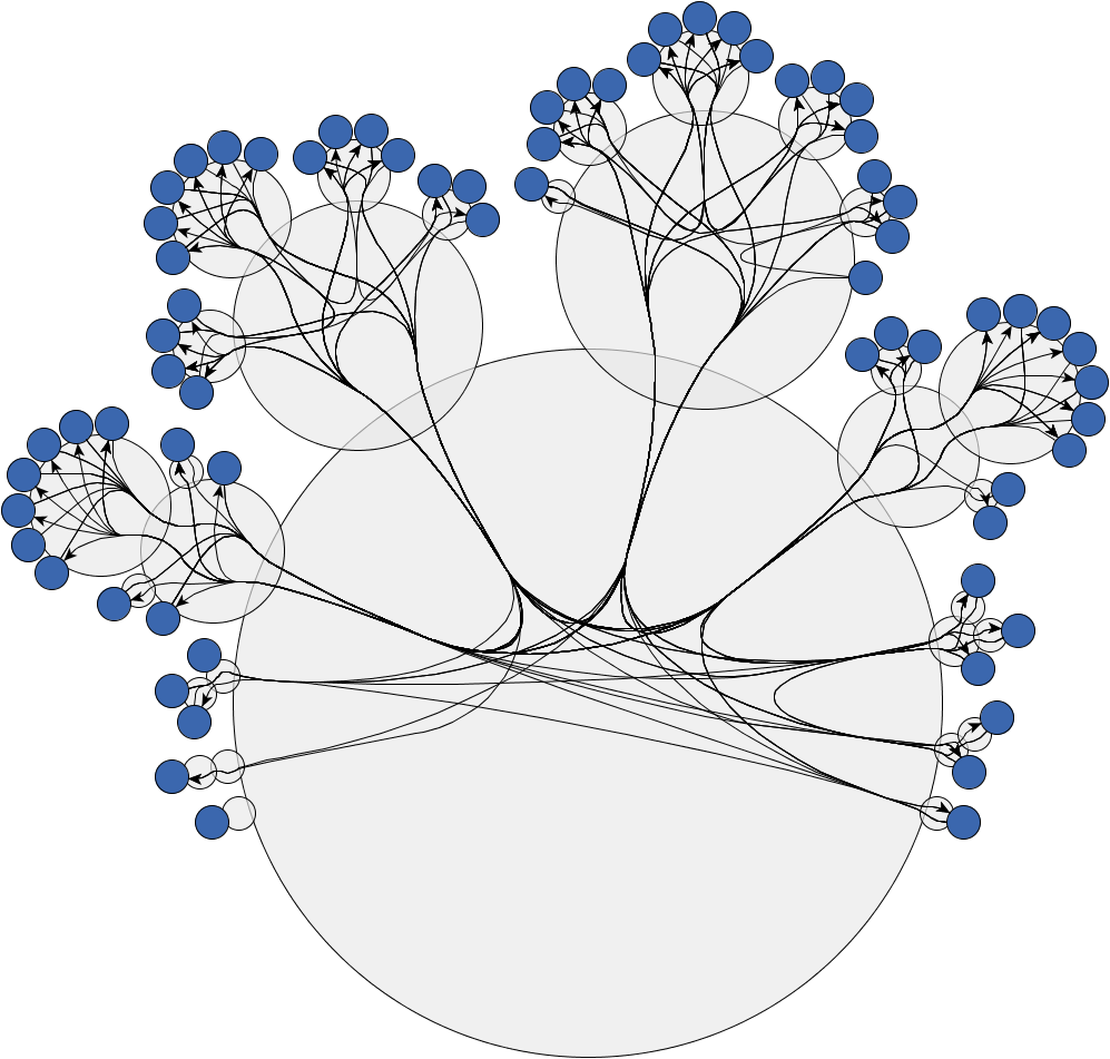 This layout algorithm arranges grouped graphs in a recursive structure.
