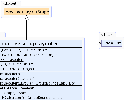 Since RecursiveGroupLayouter delegates the actual arrangement of the graph to other layout algorithms, it