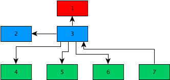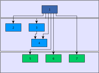 blue nodes in the medium layer while green nodes in the bottommost layer.