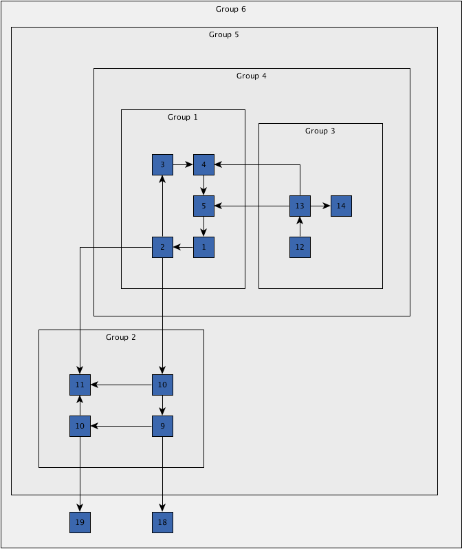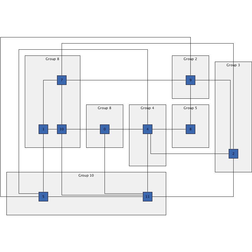 This layout algorithm arranges the elements of a given graph such that each edge is drawn as an alternating sequence of horizontal and vertical segments. All nodes belonging to the same group will be placed within the same rectangular area that represents this group. The positions and sizes of the group nodes are calculated by the layout algorithm.