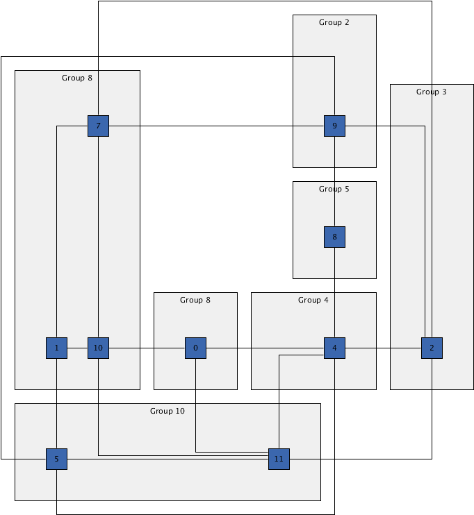 The layout algorithm is well suited for small and medium-sized sparse grouped graphs and produces drawings with no overlapping nodes, few crossings and few bends.