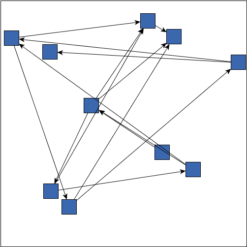 The nodes are placed at random positions. Edges connect the nodes with a straight line, anchored in the center of the nodes.