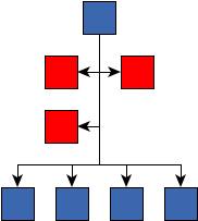 nodes is placed below the assistant nodes, center-aligned with respect to the local root node.