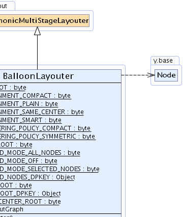 setSelfLoopLayouterEnabled in class CanonicMultiStageLayouterBalloonLayouter cannot handle self-loops. Disabling SelfLoopLayouter will lead