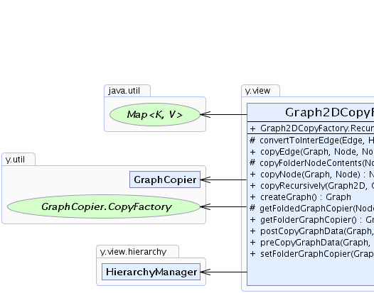 GraphCopier.CopyFactory factory = graph.getGraphCopyFactory(); Graph2DCopyFactory.RecursiveGraph2DCopyFactory recursiveFactory = new Graph2DCopyFactory.RecursiveGraph2DCopyFactory(factory); GraphCopier copier = new GraphCopier(recursiveFactory); recursiveFactory.setFolderGraphCopier(copier); copier.copy(sourceGraph, sourceNodes, targetGraph);
