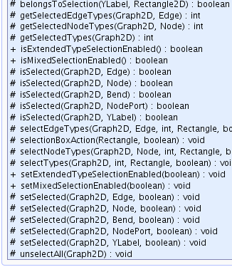 this mode supports selecting nodes, edges, and bends only.isExtendedTypeSelectionEnabled(),
