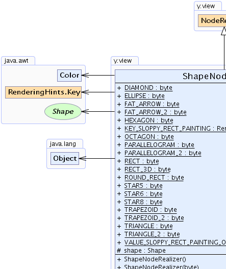 A node realizer that displays a node as a geometric shape. Possible shapes are rectangle, ellipse, rounded rectangle, triangle, octagon, hexagon, diamond and parallelogram.