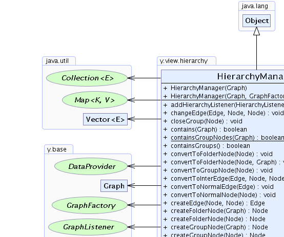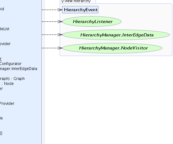 A hierarchy manager provides means to create new group and folder nodes within and/or remove existing group and folder nodes from a graph. Additionally, it provides means to move parts of a graph a level up or down in the hierarchy. Moreover, it provides means to group and ungroup nodes.