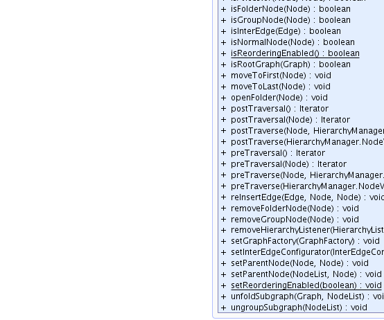 createFolderNode,createGroupNode,convertToFolderNode,convertToGroupNode,convertToNormalNode,closeGroup, andopenFoldergroupSubgraph andungroupSubgraphAs of yFiles for Java 2.11, reordering is disabled by default.