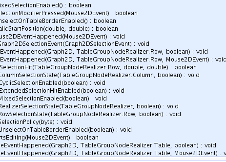 Using this selection policy the selection states of rows/columns and their TableGroupNodeRealizer are related to each other. |